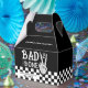 Celebrate your kid's second trip around the sun with this Bad 2 the Bone 2nd birthday party favor box. Designed in classic black and white checkerboard with skeleton hand making a peace sign, this box is perfect for highlighting your wild ride through the terrible twos. Personalize it with your event details for a party that will be two good to be true!
