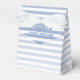 Esta é uma bonito caixa riscada azul e branca com uma delicada faixa azul. O texto pode ser mudado para fazer uma bela caixa de presentes personalizada.