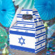 A bandeira israelense é uma estrela de David entre duas faixas horizontais em um campo branco. As cores usadas na bandeira são azul, branco. A proporção da bandeira israelense é de 8:11. A bandeira de Israel foi adotada em 1948.