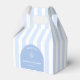 Este elegante design de caixa de favores inspirado na costa apresenta um fundo listrado azul e branco com forma de arco de tendência e motif de concha. Todas as cores (incluindo a solha e o arco) podem ser alteradas por você na dentro da ferramenta design.