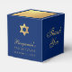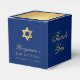 An elegant blue and gold favor box for a bar mitzvah. The flap is mostly faux gold foil. The rest is royal blue.