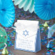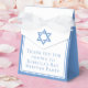 Esta caixa de favoritos do Bat Mitzvah, azul claro, tem uma bela estrela artística de David desenhando no topo. Preencha a decoração com seu nome personalizado nas caixas bonitinhas.