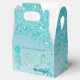 The birthday favor box features gleaming Falling Teal Blue Glitter on Teal Blue gradient with Bright Stars. The Gold and Teal Blue Glitter