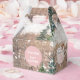 Caixa de Favoritos do chá de fraldas. Neve. Árvores de inverno. Querida, está frio lá fora. Xícara de chocolate quente. Rosa.