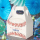 Caixa de favoritos de beisebol branco e azul / softball feliz. Personalize-o com os detalhes da sua festa de domingo. Excelente para fãs ou atletas desportivos.