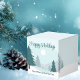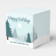 Uma bela paisagem de inverno com pinheiros verde-teal e chão coberto de neve em uma pequena caixa de festa personalizada. Personalize esse chocolate de Boas Festas para seus clientes corporativos ou funcionários.