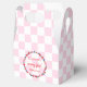 Primeira festa de aniversário de morango doce com morangos e amoras azuis em fundo de prancha de picnic rosa