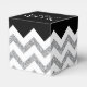 Caixinha De Lembrancinhas Black and Silver Glitter Chevrons Casando Sr & Sra