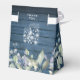 Uma caixa de favores rústica com sábio delicado e folhas de aquarela lilás, luzes de cordas e frascos de pedras em um fundo azul de madeira. Você pode personalizar com seu próprio obrigado sua mensagem ao contrário. Uma maneira perfeita de dizer obrigado aos seus hóspedes! Projetado por Thisnotme©