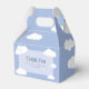 Obrigado de celebração de casamento bonitinho, sua caixa de favoritos de hóspedes apresenta nuvens brancas em um fundo azul com os recém-casados na nuvem nove. Personalize os nomes e a data do evento em na moda azul para torná-lo seu. Caixa de presentes divertida é parte de uma única coleção casual de casamentos casuais personalizável. Não perca a diversão - peça a sua hoje!