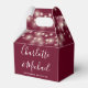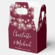 Caixa de favoritos de casamento elegante com luzes bonito de cordas, nomes de guião de assinatura chic e data especial em fundo burgundy. Você pode personalizar com seu próprio obrigado sua mensagem ao contrário. Uma maneira perfeita de dizer obrigado aos seus hóspedes! Projetado por Thisnotme©