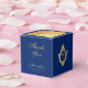 An elegant blue and gold favor box, recommended for a boy's religious confirmation. The flap is mostly faux gold foil. The rest is royal blue.