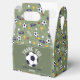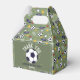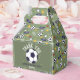 This cute and modern sports-themed kids birthday thank you favor box design features a green sports cartoon design, with a soccer ball and stars, and football pattern. The box can be personalized with your boy's name, a message, and the date of your party. The perfect sports-themed addition to your child's football birthday party, great for party favors!