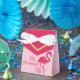 Com uma frase inteligente, "sua garota flaminGO", essas caixas de favores cor-de-rosa são divertidas para festas de tema flamingo.