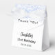 Uma festa de aniversário elegante e glamourosa de 21 ruas (ou qualquer idade). Um fundo branco chic com brilho azul claro, brilhos. Com o texto: Obrigado! Personalize e adicione seu nome. O nome é escrito com um script de estilo manuscrito de tendência.