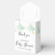 Caixa de lembrança da festa do bebê neutra com estrelas e nuvens em verde menta e dourado em cordas, em um fundo branco. Personalize com os detalhes do seu evento. Criado por Thisisnotme©