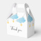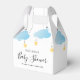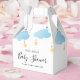 Caixa de favor de churrasco de bebê menino azul brilho brilho pequena estrela com nuvens azuis fofas e estrelas douradas em cordas, em um fundo branco. Personalize com os detalhes do seu evento especial. Criado por Thisisnotme©