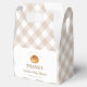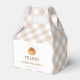 For the mama-to-be. 'Bun In The Oven' themed baby shower favor boxes which can be personalized. Your personalized text will appear on the front and back. Featuring a pastel gingham background and watercolor cinnamon bun, these favor boxes are ideal for a 'bun in the oven' or general baking themed baby shower.