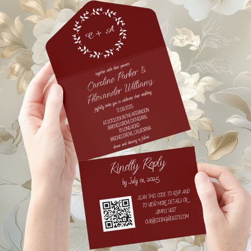 Burgundy, botanical, initials, rustic, minimalist favor box. Perfect for Weddings, birthdays, parties.