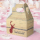 Uma caixa de favoritos de partido com estilo rústico. Projetado com uma cabeça de veado com galhadas, feito de xadrez vermelha. . Uma imagem de planícies de madeira para o fundo dá-lhe uma sensação de país estranho.