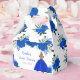 Esta doce caixa de 16 favoritos apresenta flores florais azuis reais brilhantes e uma bela princesa com cabelos loiros e um vestido elegante. Isto é perfeito para uma doce festa de aniversário de dezesseis.