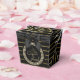 Un elegante toque final para regalos con acción de agradecimiento en cualquier ocasión como esta caja lujosa con cristales y cinta de adorno y rayas doradas con fondo negro elegante.
