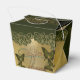 elegante toque final para regalos de agradecimiento como esta caja con rosas y mariposas verde lindo con dorado.