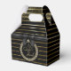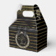 Un elegante toque final para regalos con acción de agradecimiento en cualquier ocasión como esta caja lujosa con cristales y cinta de adorno y rayas doradas con fondo negro elegante.