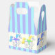 Pôs pintados bonito, design de carrossel favorece a caixa de presentes com listras azuis e roxas e cavalos coloridos.