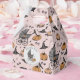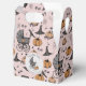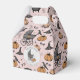 Esta caixa de lembrancinhas de Halloween customizada e elegante apresenta ilustrações desenhadas à mão em tinta preta por Nathalie Portet. O Nome, Evento e Data personalizados são impressos em ambos os lados. Contra um belo fundo rosa claro, imagens de carrinhos de bebê antigos, chapéus de bruxa, corvos pretos, abóboras, teias de aranha, caldeirões borbulhantes e cogumelos minúsculos e manchados adornam esta caixa de lembrancinhas de festa. Uma moldura circular exibe seu Agradecimento personalizado ("Obrigado" pode ser alterado para "Feliz Halloween, Parabéns, Feliz 1º Aniversário", etc.) Nome e Data. Ideal para Chá de Bebê de Halloween, 1º Halloween, 1º Aniversário, Bebê de Outubro, Nova Mãe, etc.