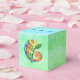 Esta caixa de favor ou presente é uma mistura de blues e verdes molhados com um lagarto de desenho animado divertido segurando uma folha em uma vareta em cores brilhantes de azul, verde, amarelo e laranja. Personalize seu texto no flap superior com o modelo.