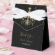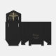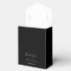 Este design apresenta um elegante fundo preto com um lustre em cor dourada vintage. O lustre dourado damasco reflete sua sombra contrastando com o preto. A combinação das cores preto e dourado cria um estilo sofisticado, moderno e chique. Design de caixa de lembrança de casamento elegante com elementos modernos. A configuração simples da tipografia lhe dá um estilo distinto. Convites de casamento e outros itens de papelaria correspondentes também estão disponíveis.