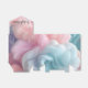 O design de doce de abstrato de algodão rosa, púrpura, aqua, azul e branco para nomes de casamento pode ser mudado.