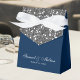 Caixa personalizada de favoritos de casamento azul e prata.