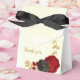Flores vermelhas escuras e escuras românticas com ouro deixam caixa de favor botânico. Você pode usá-lo para qualquer evento: casamento, aniversário, noiva e chás de fraldas, graduação...... Os detalhes de brilho são simulados.