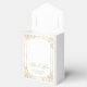 Obrigado seus convidados de casamento com essas caixas de favor elegantes, com uma imagem de ouro falso retangular vintage em fundo branco, com uma folha de ouro falso e uma fita de atino listrada para trás e flape. As palavras "Obrigado" aparecem em ornamentado dourado. Personalize as caixas com os nomes da noiva e do noivo e a data do casamento na letra da placa de ouro.