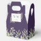 Uma elegante caixa de favores de casamento com folhas de aquarela delicadas em um fundo roxo moldando suas iniciais monográficas, data especial, e obrigado que você coloca na tipografia moderna. Uma maneira perfeita de dizer obrigado aos seus hóspedes! Projetado por Thisnotme©