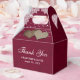 Coloque seus presentes de chá de panela/casamento nessas caixas de favores românticas rústicas com burgundy, com rendas e cordas em um fundo de burlap.