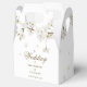 Caixa de lembrança de casamento floral elegante com delicada flor branca e detalhes do seu evento em tipografia dourada chique. Você pode personalizar com sua própria mensagem de agradecimento no verso. Uma maneira perfeita de dizer obrigado aos seus convidados! Desenhado por Thisisnotme