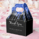 Adicione o toque final à sua festa de recepção de casamento com estas caixas de favoritos de casamento prateadas e brilhantes azuis. Personalize com seus nomes e data do casamento. Esta coleção temática de casamento e polícias da polícia será favorita entre todos os policiais, esposas policiais e polícias. Visite esta elegante coleção de casamento preto e azul para cartões salve a data, convites para casamento, favoritos para festas e muito mais! COPYRIGHT © 2020 Judy Burrows, Black Dog Art - Todos Os Direitos Reservados. Caixa de Favor do Casamento de Glitter Azul Negro Elegante