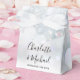 Caixa de lembrança de casamento elegante com nomes em letra de assinatura estilosa e data especial em tipografia moderna em um fundo de flocos de neve de inverno. Você pode personalizar com sua própria mensagem de agradecimento sob a tampa. Uma maneira perfeita de dizer obrigado aos seus convidados! Criado por Thisisnotme©