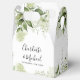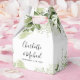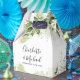 Caixa de lembrança de casamento elegante com folhas verdes, nomes em letra de assinatura chic e data especial. Você pode personalizar com sua própria mensagem de agradecimento no verso. Uma maneira perfeita de dizer obrigado aos seus convidados! Desenhado por Thisisnotme©