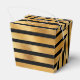 Caixa de favoritos de casamento personalizado moderno, preto e folha de ouro, com faixas pretas e douradas. Personalize facilmente estas caixas de favoritos do casamento com os seus detalhes do casamento. Nossas caixas de adversários de luxo são perfeitas para sua elegante festa de casamento preta e dourada. Esse obrigado personalizado que você favorece as caixas pode ser personalizado para outras ocasiões, como chás de panela.