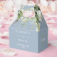 Caixa de lembrança de casamento em folhagem floral azul empoeirado elegante personalizada com seus nomes, iniciais do monograma, data do casamento e mensagem especial. Projetado por Thisisnotme