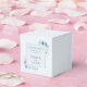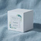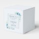 Esta elegante caixa de favor do casamento apresenta flores de cor azul-d-água macia com folhagem verde foliar, moldando os nomes do casal em uma fonte serif clássica. Um toque de acabamento refinado para favores de casamento românticos ou manutenção