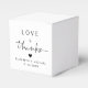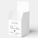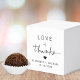 Caixa de favoritos de casamento com "Love + Obrigados" em uma simples tipografia e um roteiro moderno de na moda, e seus nomes e data de casamento.