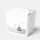 Mande seus hóspedes para casa com boas memórias e guloseimas nessas encantadoras caixas de favores, personalizadas com os nomes e a data da noiva e do noivo. Adorados com uma elegante design de âncora na frente e um veleiro com faixas náuticas na parte de trás, tudo com tons de cinza azulada, estas caixas adicionam um toque de charme costeiro aos seus favores de casamento.