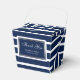 Marinho personalizado moderno favorece as caixas com listras brancas em um fundo azul marinho. Personalize facilmente estas caixas de favoritos azuis de marinho com seus detalhes de casamento. Nossas caixas de favoritos azuis do marinho moderno são perfeitas para sua elegante festa de casamento azul marinho. Esse obrigado personalizado que você favorece caixas pode ser personalizado para outras ocasiões, como noiva ou chás de fraldas.
