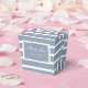 Casamentos azuis e poeirentos modernos favorecem caixas com listras brancas em um fundo azul empoeirado. Personalize facilmente as caixas de favoritos azuis com seus detalhes de casamento. Nossas modernas caixas de favoritos azuis são perfeitas para sua elegante festa de casamento azul empoeirada. Esse obrigado personalizado que você favorece caixas pode ser personalizado para outras ocasiões, como noiva ou chás de fraldas.