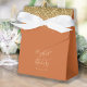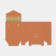 O flape da frente desta elegante e moderna caixa de favoritos de casamento apresenta uma borda falsa dourada. O texto personalizável combina letras douradas e fontes de impressão coloridas sobre um grande e sobre um fundo laranja queimado.